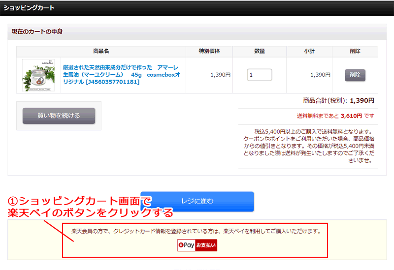 ※レジに進むボタンを押してしまうと楽天ペイはご利用出来ませんのでご注意下さい。