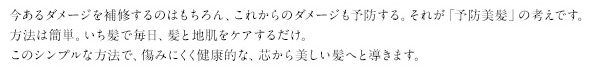 くせ毛やうねりでハネてしまう髪も まっすぐなストレートスタイルへ <さらさらストレートキープ処方> くせ毛やうねりを1本1本伸ばし、キューティクルを整えます。 □UVカット成分配合(メトキシケイヒ酸エチルヘキシル) □ドライヤーの熱から髪を守るヒートプロテクト □湿気コントロール ご購入はこちら