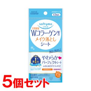 【ゆうパケット送料無料】ソフティモ(softymo) 天然保湿 コラーゲン配合 メイク落としシート 携帯用 12枚入×5 コーセーコスメポート