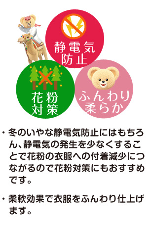 □ 子供の手の届くところに置かない。 □ 用途以外に使用しない。 □ 洗濯機の自動投入口を使う場合は、洗濯機の取扱説明書をよく読む。 □ 洗剤や漂白剤と混ぜない。 □ 原液が直接衣類にかからないようにする。 □ 植物生まれの柔軟成分を使用しているため、 保管条件により液の分離、固化が生じることがあります。 お買い求めいただいた後はできるだけ早めにお使いください。 □ 高温や低温、および直射日光などを避けて保管する。 □ やわらかい材質のため、持ち運びや保管時の破損に注意してください。 ※これは飲み物ではありません。 <応急処置> □ 万一飲み込んだ場合は、はかずに口をすすぎ水を飲むなどの処置をする。 □ 目に入った場合は、こすらずただちに流水で15分以上洗い流す。 □ いずれの場合も処置をしたうえ専門医に相談する。※受診時は商品を持参する。 |