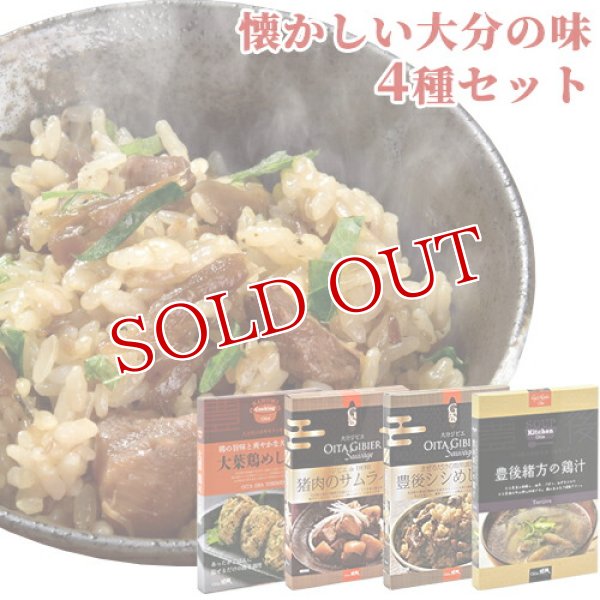 Oita成美 懐かしい大分の味セット(猪肉のサムライ煮/豊後シシ飯の素/豊後緒方の鶏汁/大葉とり飯の素)