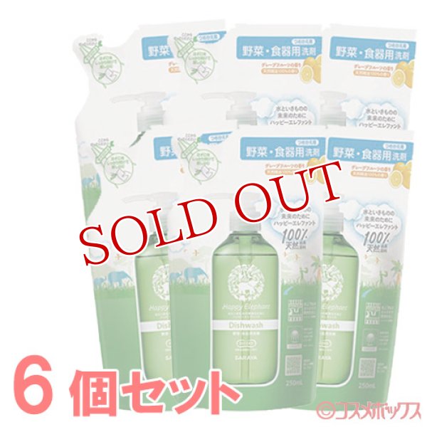 ハッピーエレファント(Happy Elephant) 野菜・食器用洗剤 リフレッシュ つめかえ用 250ml×6袋セット サラヤ(SARAYA)【送料無料】 [J4973512260698S6]