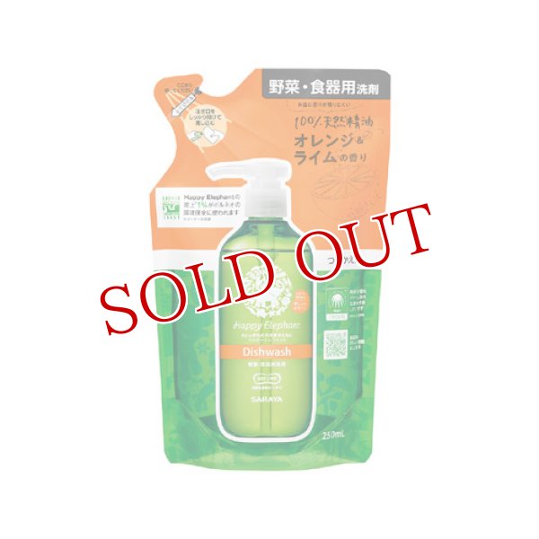 ハッピーエレファント(Happy Elephant) 野菜・食器用洗剤 オレンジライム つめかえ用 250ml サラヤ(SARAYA) [J4973512260735]