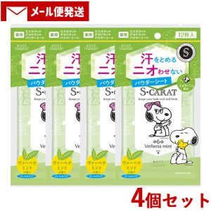 【ゆうパケット送料無料】エスカラット(S-CARAT) 薬用デオドラント パウダーシート(無香料) 12枚入×4 コーセーコスメポート [J4971710391053S4]