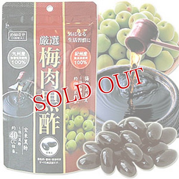 厳選された玄米黒酢と梅肉エキスを使用 ■ 九州産有機玄米使用100%+紀州産南高梅使用100%九州産の有機玄米を原料とした玄米黒酢もろみと紀州産南高梅を使った梅肉エキス、日々の健康管理にぜひお役立ていただきたい相性抜群の組合わせです。玄米黒酢:1粒に黒酢約40cc相当梅肉エキス:1粒に青梅約7g相当 ■ ひとつひとつの原料と昔ながらの製法にこだわって生まれた梅肉黒酢『梅肉』と『黒酢』は共に古来より体によいと伝えられてきた成分です。黒酢には体を作るうえで必要な必須アミノ酸をすべて含んでおり、その他のアミノ酸と合わせると種類は18種にのぼります。アミノ酸の宝庫と言われる黒酢の中でも有機玄米を使用した古来の製法により一般米酢にくらべ約18倍ものアミノ酸を含有しています。梅肉エキスに含まれているクエン酸には殺菌作用があり、体内で生じる疲労物質の乳酸を分解して、身体の活力を改善します。またコトコトと煮詰めることによって生成されるムメフラールを含んでいます。日本を代表する紀州産南高梅を厳選し梅肉エキスに仕立てています。こちらも徹底した伝統の技術を今なお守り続けています。 ■ 食品の梅として最高級品である、和歌山紀州産の南高梅を使用温暖な気候の紀州は、いち早く梅の花を咲かせることから成長期が長く糖度の高い梅を実らせます。「梅肉黒酢」は、紀州産の南高梅に限定し、熟した大きな梅の実だけを使用。天日干しをして樽の中でゆっくりと眠らせた後、すりおろした梅肉を絞り、じっくりと時間をかけて梅肉エキスに仕立てます。梅肉エキスは青梅1kgからわずか20g〜25gしかとれない貴重品です。 ■ 農薬を一切使わない安心の有機玄米から黒酢ができるまで梅肉黒酢の主原料の一つ、玄米黒酢は宮崎県及び熊本県産の有機玄米のみを使用したこだわりの黒酢です。手間隙かけて収穫される有機玄米を、大甕を使用した伝統的な静置発酵法により温度や酸度をこまめに測定しながら発酵させます。こちらもじっくりと手間隙をかけることによって天然のアミノ酸を豊富に含んだ玄米黒酢が熟成されます。 ■ 着色料・香料・保存料はすべて無添加です商品名厳選 梅肉黒酢 約60日分(120粒入)名称梅肉エキス・玄米黒酢もろみ末、加工食品ブランド厳選梅肉黒酢内容量56.4g(1粒重量470mg、1粒内容量300mg×120粒)商品コードJ4529846116424使用方法栄養補助食品として1日2粒を目安に、水やお湯とともに噛まずにお召し上がりください。使用上の注意□ 薬を服用されている方あるいは通院中の方、妊娠および授乳中の方は、お医者様にご相談の上、お召し上がりください。□ 原材料名をご参照の上、食品アレルギーのある方はお召し上がりにならないでください。□ 体質や体調により、まれに胃部不快感、下痢などの症状がでる場合があります。□ 万一。からだに変調が生じた場合は、直ちにご使用をおやめください。□ ソフトカプセルを使用しておりますので、まれに粒どうしがくっつくことがありますが品質に問題はありません。□ 冷蔵庫での保管は粒が固まり破損等を起こす可能性がありますのでお控えください。原材料名紅花油、米黒酢もろみ末、梅肉エキス末、アセロラ末、ゼラチン、グリセリン、ライスワックス、イカスミ、ミックストコフェロール、植物レシチン栄養成分:1粒中エネルギー:2.66kcalたんぱく質:0.13g脂質:0.19g炭水化物:0.10gナトリウム:3.29mgメーカー株式会社 ORTIC cs区分日本製・栄養補助食品
