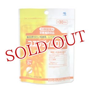 通常 3 営業日 〜 7 営業日程度で出荷予定 小林製薬の栄養補助食品 ■ 健康な毎日の基礎となるベースサプリメント不足しがちな13種類のビタミン、9種類のミネラルをバランスよく摂取できます。ビタミンQと呼ばれるコエンザイムQ10も配合。 ■ 着色料、香料、保存料すべて無添加 ■ 食生活は、主食、主菜、副菜を基本に、食事のバランスを ■ 保健機能食品(栄養機能食品)商品名マルチビタミン ミネラル コエンザイムQ10 300mg×120粒 約30日分名称ビタミン・ミネラル含有食品内容量36g(300mg×120粒)商品コードJ4987072072042召し上がり方□ 栄養補助食品として1日4粒を目安に、かまずに水またはお湯とともにお召し上がりください。□ 短期間に大量に摂ることは避けてください。使用上の注意□ 本品は、多量摂取により疾病が治癒したり、より健康が増進するものではありません。1日の摂取目安量を守ってください。□ 乳幼児・小児は本品の摂取を避けてください。□ 多量に摂取すると軟便(下痢)になることがあります。□ 亜鉛の摂りすぎは銅の吸収を阻害するおそれがありますので、過剰摂取にならないよう注意してください。□ 薬を服用あるいは通院中の方、妊娠及び授乳中の方はお医者様にご相談の上お召し上がりください。□ 全成分表示をご参照の上、食品アレルギーのある方はお召し上がりにならないでください。□ 体質や体調により、まれにかゆみ、発疹、胃部不快感、下痢、便秘などの症状が出る場合があります。その場合は直ちにご使用をおやめください。□ ビタミンB2の影響で尿が黄色くなることがあります。□ 食品ですので衛生的な取り扱いをお願いします。□ 天然由来の原料を使用しておりますので、まれに色が変化する場合がありますが、品質に異常はありません。□ 本品は、特定保健用食品と異なり、厚生労働大臣による個別審査を受けたものではありません。保存方法□ 直射日光をさけ、湿気の少ない涼しいところに保存してください。□ 開封後は湿らないように開封口をしっかりと閉めて、お早めにお召し上がりください。原材料名麦芽糖、ゼラチン(ショ糖含有)、ビタミンE、デンプン、黒胡椒エキス、クロム酵母、コエンザイムQ10、セレン酵母、デキストリン、モリブデン酵母、植物油(上白糖含有)、マンガン酵母、未焼成カルシウム、結晶セルロース、酸化マグネシウム、ビタミンC、ショ糖脂肪酸エステル、微粒酸化ケイ素、グルコン酸亜鉛、ナイアシン、シェラック、硫酸第一鉄、パントテン酸カルシウム、メチルヘスペリジン、デュナリエラカロテン、アラビアガム、グルコン酸銅、ビタミンB6、ビタミンB2、ビタミンB1、葉酸、ビオチン、ビタミンK、ビタミンD、ビタミンB12全成分表示製造時、1粒あたりの含有量ビタミンB1:0.25mg、ビタミンB2:0.27mg、ビタミンB6:0.25mg、ビタミンB12:0.0005mg、ビタミンC:20.0mg、ビタミンD:0.000625mg、ビタミンE:2.0mg、ビタミンK:0.001625mg、ナイアシン:2.75mg、葉酸:0.05mg、ビオチン:0.0075mg、デュナリエラカロテン:1.01mg、パントテン酸カルシウム:1.64mg、未焼成カルシウム:138.15mg、硫酸第一鉄:2.0mg、酸化マグネシウム:32.79mg、グルコン酸銅:0.36mg、マンガン酵母:0.006mg、セレン酵母:0.96mg、グルコン酸亜鉛:4.04mg、クロム酵母:1.25mg、モリブデン酵母:0.71mg、メチルヘスペリジン:1.25mg、コエンザイムQ10:1.25mg、黒胡椒エキス:1.25mg、ゼラチン(ショ糖含有):2.16mg、デキストリン:0.88mg、デンプン:1.66mg、アラビアガム:0.46mg、植物油(上白糖含有):0.35mg、結晶セルロース:33.2mg、ショ糖脂肪酸エステル:6.0mg、麦芽糖:37.62mg、微粒酸化ケイ素:5.42mgコーティング材:シェラック栄養成分表示1粒あたりの含有量エネルギー:0.4kcal、たんぱく質:0.0094g、脂質:0.013g、糖質:0.055g、食物繊維:0.045g、ナトリウム:0.11〜1.1mg、β-カロテン:268μg、ビタミンB1:0.25mg、ビタミンB2:0.27mg、ナイアシン:2.75mg、ビタミンB6:0.25mg、葉酸:50μg、ビタミンB12:0.5μg、ビオチン:7.5μg、パントテン酸:1.5mg、ビタミンC:20mg、ビタミンD:0.5〜0.625μg、ビタミンE:2mg、ビタミンK:1.62μg、カルシウム:53mg、鉄:0.63mg、マグネシウム:19mg、銅:0.05mg、マンガン:0.0045mg、セレン:1.9μg、亜鉛:0.525mg、クロム:2.5μg、モリブデン:1.4μg、メチルヘスペリジン:1.25mg、コエンザイムQ10:1.25mgメーカー小林製薬株式会社区分日本製・栄養機能食品