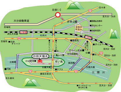 日田天領水の原水井戸(深井戸)は四方を耶馬日田英彦山国定公園「三隈川」に囲まれた中州のほぼ中央にあります。