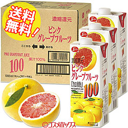 ●送料無料 JA熊本果実連 ジューシー 濃縮還元ピンクグレープフルーツ100 キャップ付紙パック1000ml×6本 Juicy