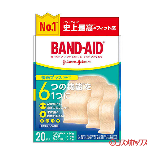 バンドエイド(BAND-AID) 快適プラス 3サイズアソート 20枚入 ジョンソン・エンド・ジョンソン(Johnson&Johnson)
