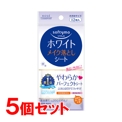 【ゆうパケット送料無料】ソフティモ(softymo) ホワイト メイク落としシート 携帯用 12枚入×5個 コーセーコスメポート