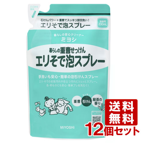 ミヨシ石鹸 暮らしの重曹せっけん エリそで泡スプレー つめかえ用 230mL×12個セット【送料無料】