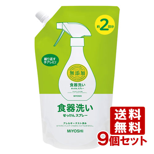 ミヨシ石鹸 無添加食器洗いせっけんスプレー つめかえ用 600mL (約2回分)×9個セット【送料無料】