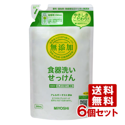 ミヨシ石鹸 無添加 食器洗いせっけん つめかえ用 350mL×6個セット【送料無料】