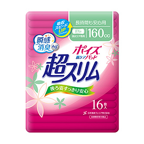 ポイズ 肌ケアパッド 吸水ナプキン 超スリム 長時間も安心用 160cc 16枚入 日本製紙クレシア(Crecia)