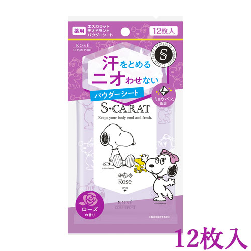 エスカラット(S-CARAT) 薬用デオドラント パウダーシート(ローズ) 12枚入 コーセーコスメポート(KOSE COSMEPORT)