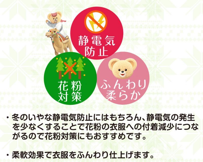 | 成分 | 界面活性剤(エステル型ジアルキルアンモニウム塩)、安定化剤、香料、抗菌剤 |