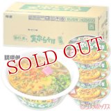 ●お湯の目安量 350ml 1.フタを半分まではがし、粉末スープ、液体スープ、かやくの袋を取り出す。 2.かやく、粉末スープを入れ、熱湯を内側の線までゆっくり注ぎフタをする。 3.3分後、液体スープを入れ、よくかき混ぜてできあがり。 |