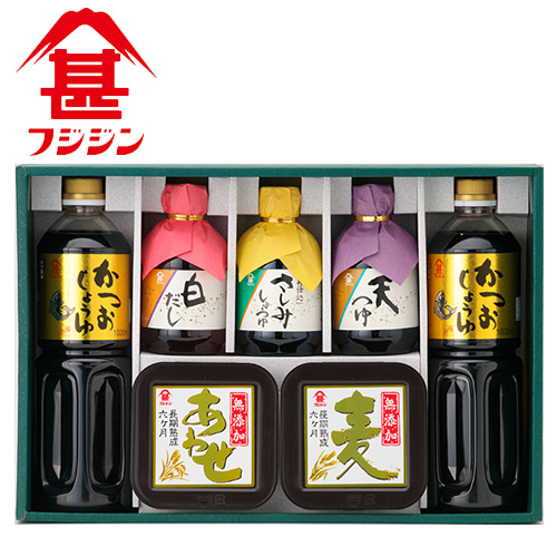 富士甚醤油 フジジン 豊の香雅 7点セット(かつおしょうゆ・白だし・さしみ醤油・天つゆ・合わせみそ・麦みそ) [J4902412841683]