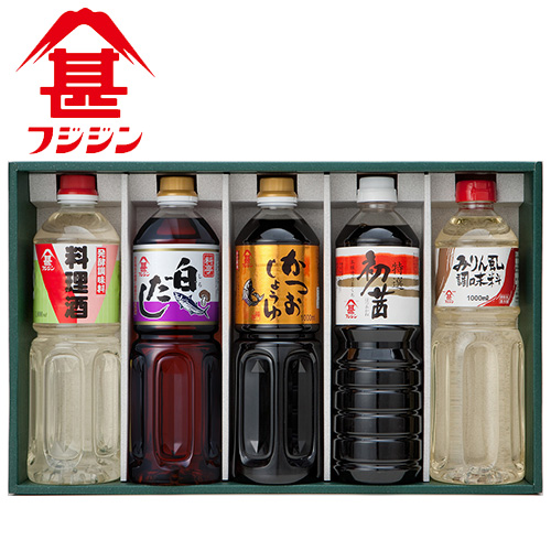 富士甚醤油 フジジン 味のバラエティーセット (料理酒・みりん風調味料・特選初茜・かつお醤油・白だし) [J4902412842512]